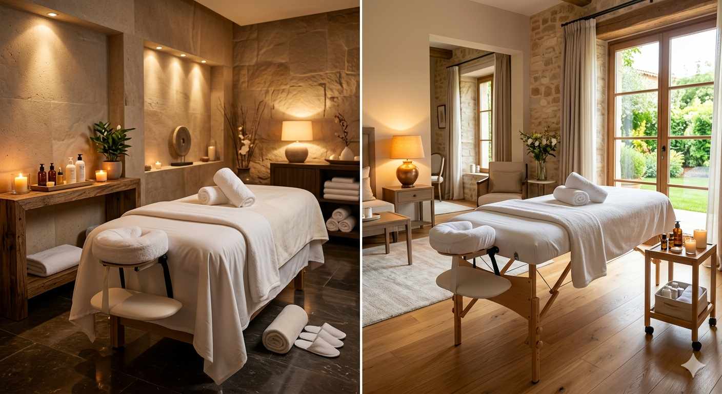 | Best for | Full spa ritual, solo visits | Privacy, mobility, groups, villas |